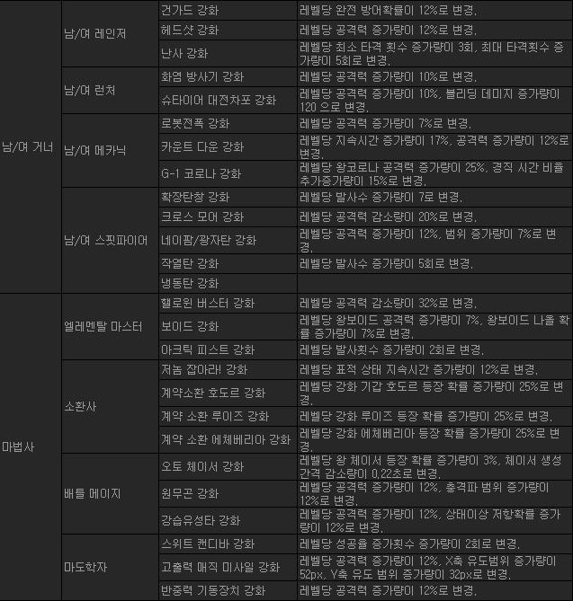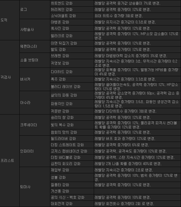 * 특정 스킬의 옵션 및 속성이 변경됩니다.