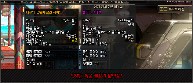 - 선택한 장비 아이템의 옵션 툴팁과 현재 장착 중인 장비 아이템의 옵션 툴팁이 함께 볼 수 있습니다.