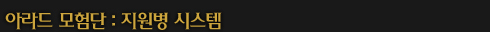 * 아라드 모험단의 하위 컨텐츠로서, 동일 계정 내의 캐릭터로 50레벨 달성과 전직/각성을 완료하면 지원병으로