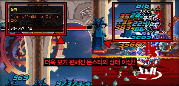 「상태 이상의 발동 확률과 효과가 개선되며, UI가 더욱 직관적으로 변경됩니다.」