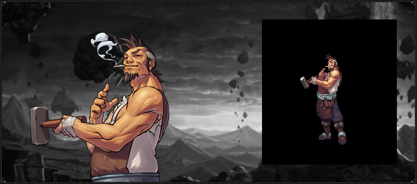 대전이가 일어난 지금은 베히모스로 자리를 옮겨 대장간을 운영하고 있다. |