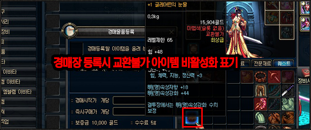 - 적용 윈도우 : 경매장, 개인상점, 1:1거래, 장비강화, 장비해체, 마법봉인 재생/변환, 무기 제련등