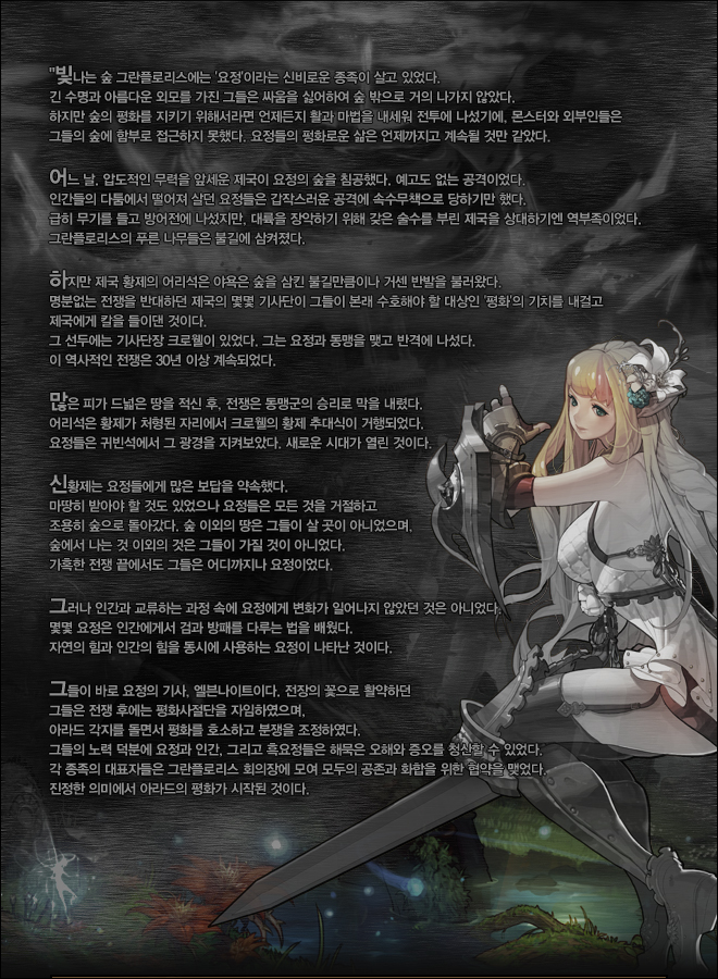 * 엘븐나이트는 대검만 사용합니다.(대검 이외 장비는 장착 불가능)