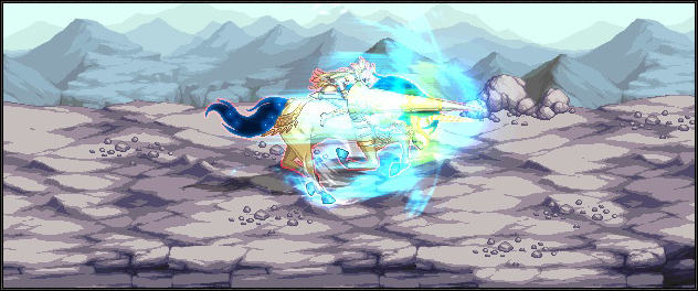 전방으로 빠르게 돌격한다. 돌격 중 닿은 적은 대미지를 입고 밀려난다. |