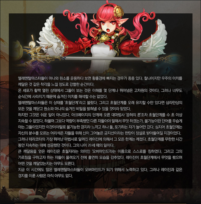 원소에 대한 친화력이 강화되어 원소 마법을 좀 더 효율적으로 사용할 수 있다.