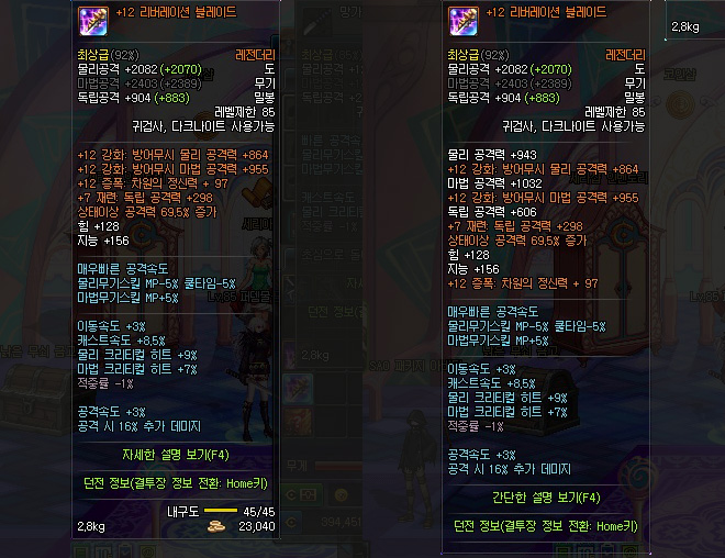 * 아이템 툴의 기본 설명에서는 무기의 종합 점수와 스탯 및 인챈트 정보가 노출되며, 자세한 설명보기(F4)에서 기존과