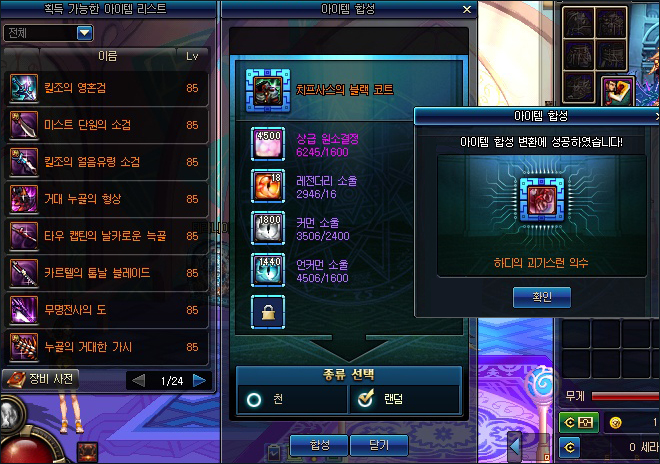 * 아이템 합성이 가능한 아이템 등급은 레어, 유물, 유니크, 레전더리입니다.