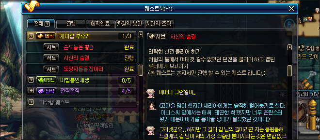 * 에픽 퀘스트는 퀘스트 완료 시 다음 연속 퀘스트가 자동으로 수락됩니다.