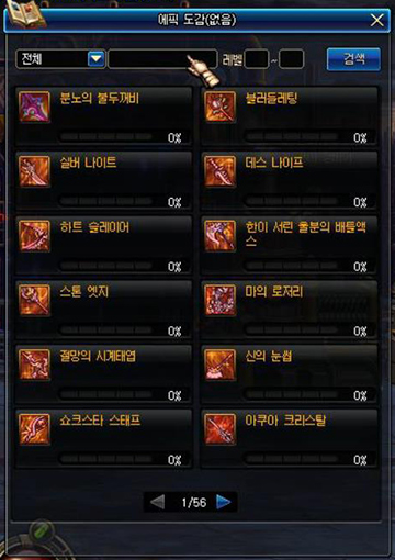 * 에픽 도감에서 에픽 조각을 통해 제작할 수 있는 모든 에픽을 확인할 수 있습니다.