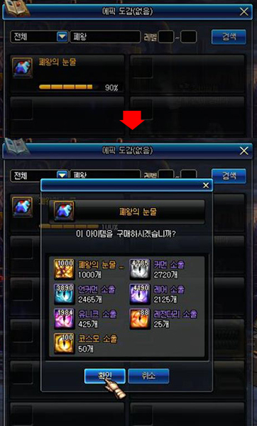 에픽 조각 1000개를 모았을 때의 비용 관련하여서도 변경점이 있어 추가 안내드립니다.
