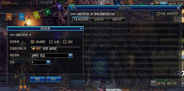 * 시나리오, 순환 던전 파티 시 일반 던전 목록은 선택할 수 없습니다.