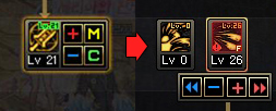 * 스킬 습득 시 기존의 "M", "C" 버튼이 "<<", ">>"이미지로 변경되고 해당 위치에 마우스 오버 하면 간략한 도움말을