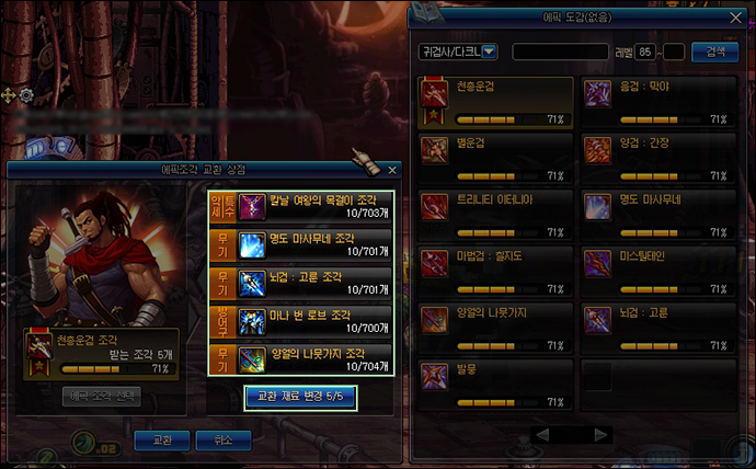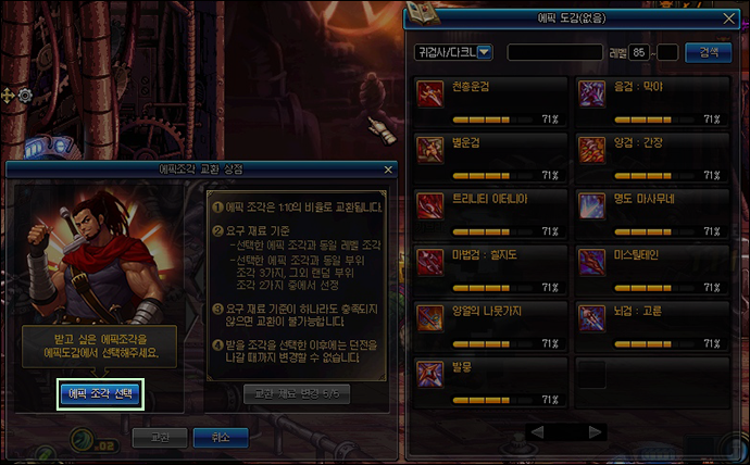 * 에픽조각 교환 시스템이 추가됩니다.