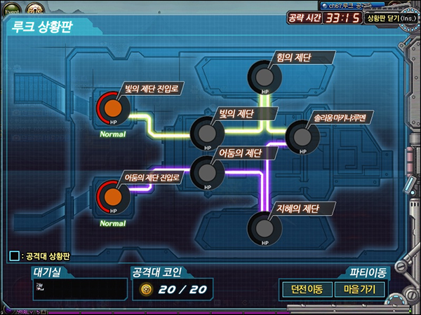 ↑루트별 던전 및 솔리움 마키나 : 루멘 개방 과정