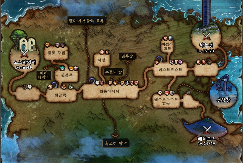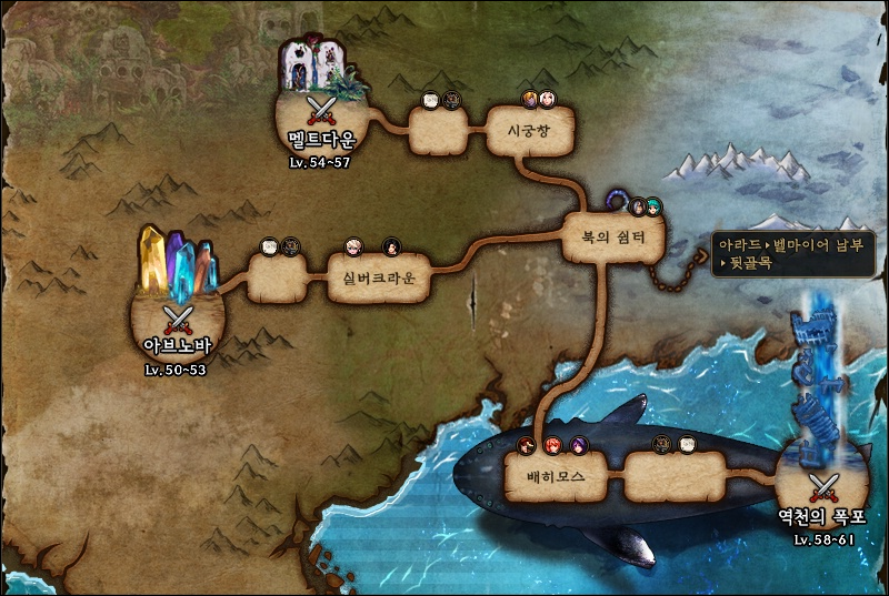 아라드 대륙 곳곳을 가보았네. 춥디추운 설산, 지하 속에 사는 흑요정의 왕국... 무인의 도시 쇼난도 가봤지.
