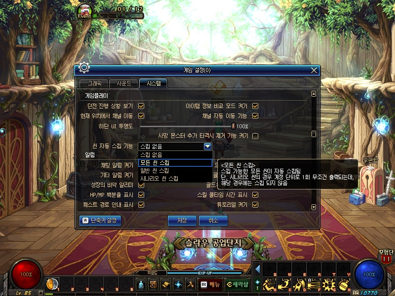 · 게임설정을 통해 자동 스킵 여부를 설정할 수 있습니다. (게임설정 > 시스템)