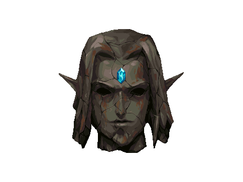 형태 : 발견 당시 동상은 얼굴만 남아 있는 상태였고, 목 아래 부분은 무언가 강한 힘에 의해 뜯긴 것처럼 울퉁불퉁했다. 가장 시선을 끄는 것은 이마에 박힌 보석이었는데 거대한 크기도 크기지만, 특유의 영롱한 빛깔로 도굴꾼들을 불러 모았다. 수많은 도굴꾼들이 보석을 얻기 위해 수단과 방법을 가리지 않았지만, 어떤 방법으로도 동상에 흠집 하나 낼 수 없었다고 한다.