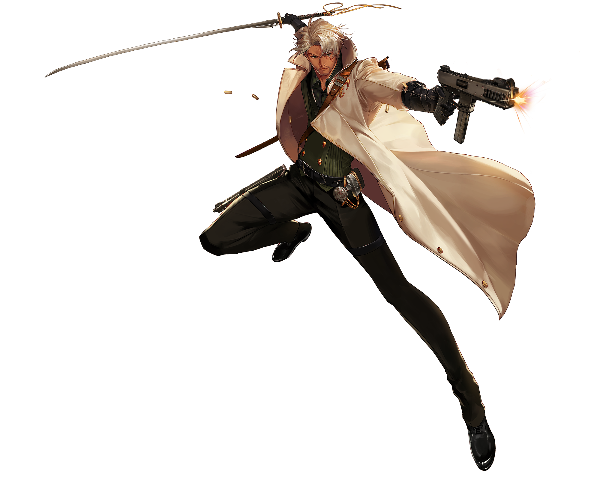 올려베기로 적을 띄운 후 공중의 뜬 적에게 사격하여 피해를 입힌다. 건물형, 잡기 불가능한 적에게는 올려베기 후 내려베기로 연계하여 적을 공격한다 |