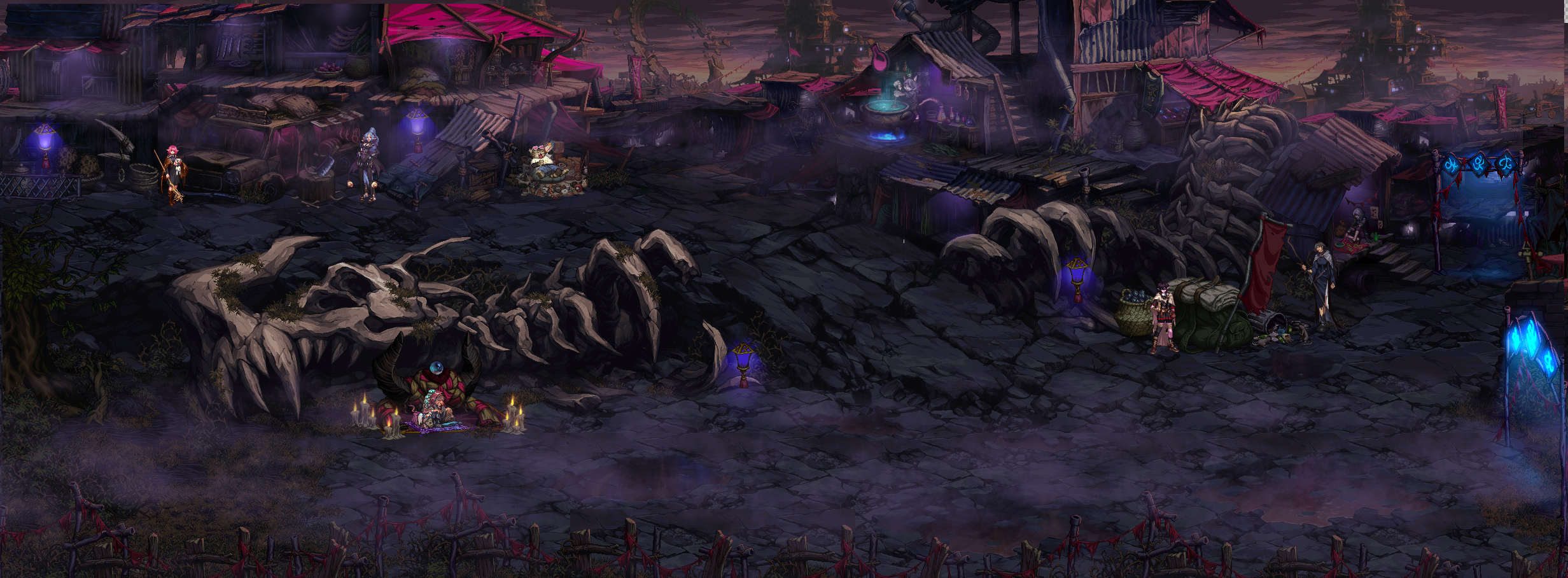 · 어둠이 지배하는 곳, 다크 시티. 마계에 빛이 조금씩 들어옴에 따라 아직 빛에 익숙하지 않은 자들이 이곳으로 피해 거주하고 있다. 카쉬파의 탄압을 피해 숨어든 마계인들도 많다.