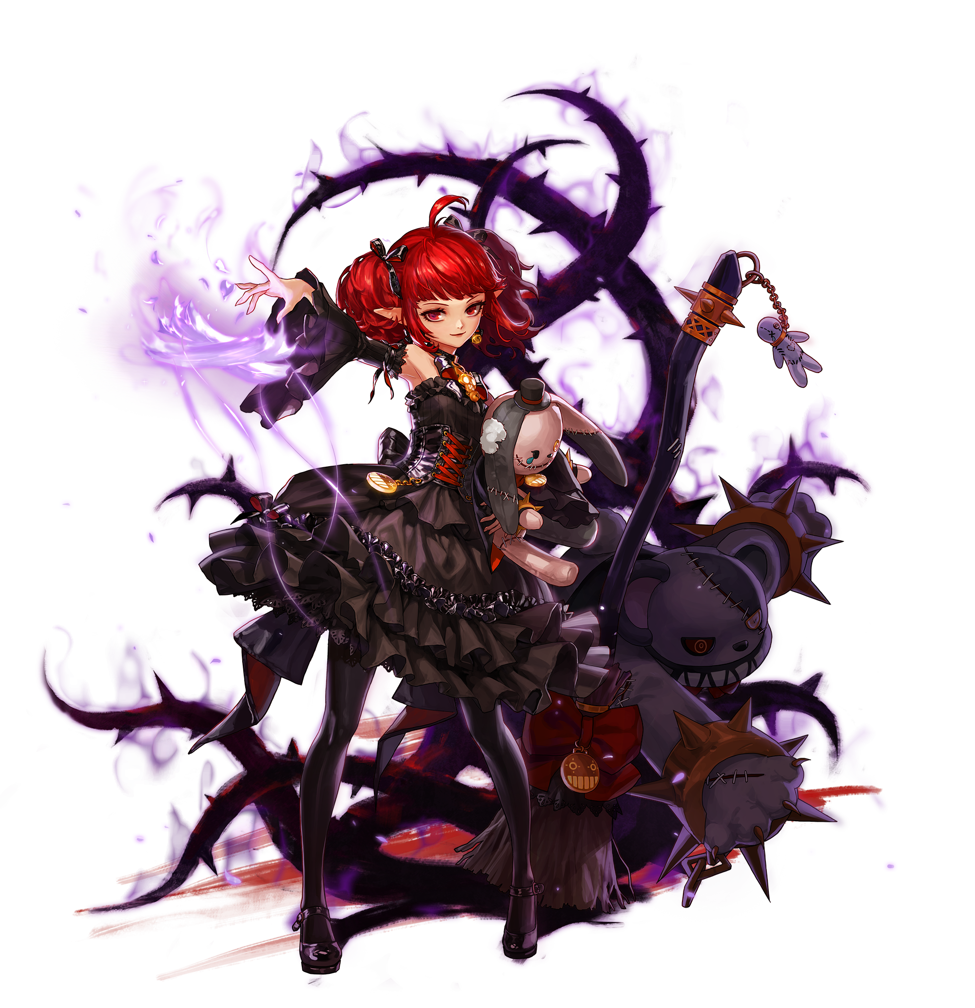 범위 내의 파티원과 적에게 각각 다른 효과를 적용시키는 저주인형과 좀비인형을 소환합니다.