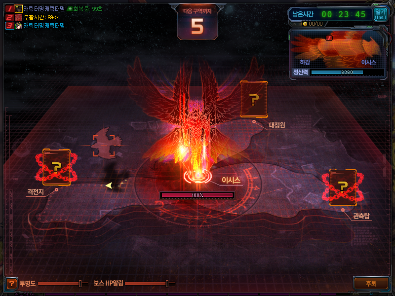 · 스레니콘의 정신력이 모두 소진되기전에 이시스를 처치해야 합니다.