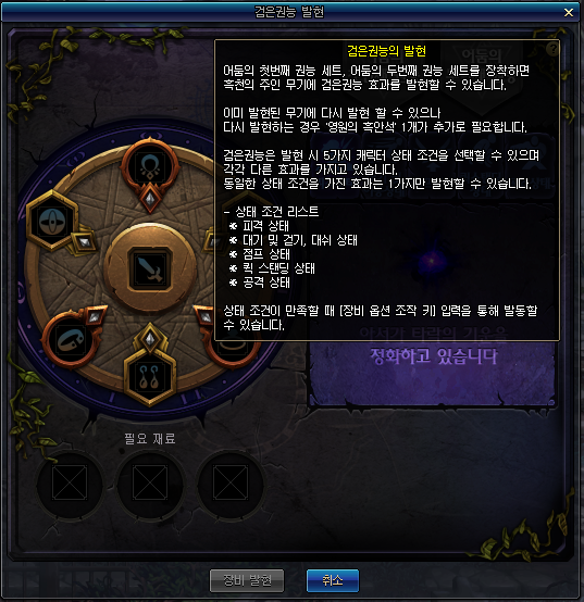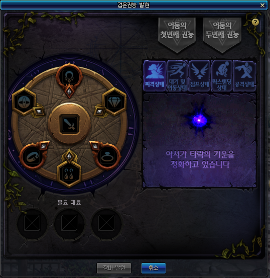 | 골드 | 2,140,000 골드 - 권능 발현 시, 계승할 장비의 강화/증폭/ 재련/마법부여 옵션에 따라 소모 골드가 변경될 수 있습니다. |