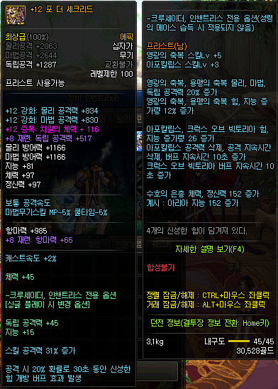 · ,(쉼표) 키를 누르고 있을 시 아이템 정보창을 보지 않을 수 있습니다.