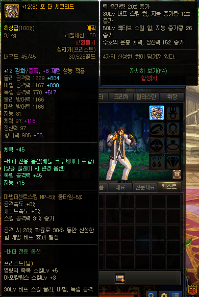· 영광의 축복, 용맹의 축복, 금단의 저주 → 30Lv 버프 스킬