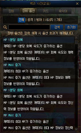 · 백과 사전에 장비 옵션 사전이 추가됩니다,