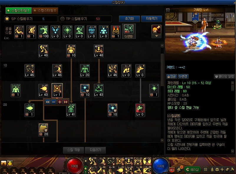 · 스킬 트리에서 퀵슬롯으로 드래그 앤 드롭을 통해 스킬을 직접 배치가 가능합니다.