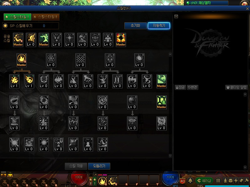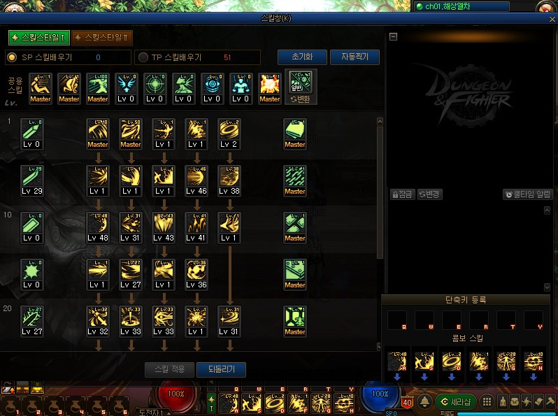 · 다크나이트는 스킬창 우측 단축키 등록창으로 드래그 앤 드롭을 통해 배치가 가능합니다.