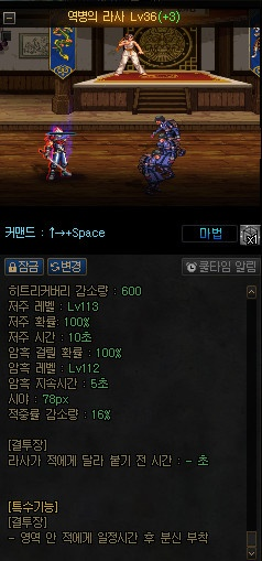 · 스킬 커맨드 변경 기능 사용 시 상단에 선택한 스킬이 배치되며 키 입력이 가능한 상태가 됩니다.