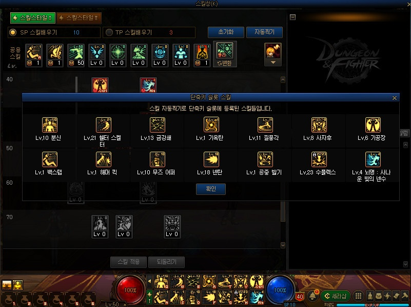 · 정보 팝업 창에 퀵슬롯에 배치된 스킬명과 습득 레벨 확인이 가능합니다.