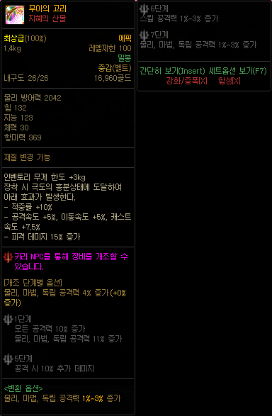 ![]() 100Lv 교환불가 지혜의 인도 에픽 장비 |