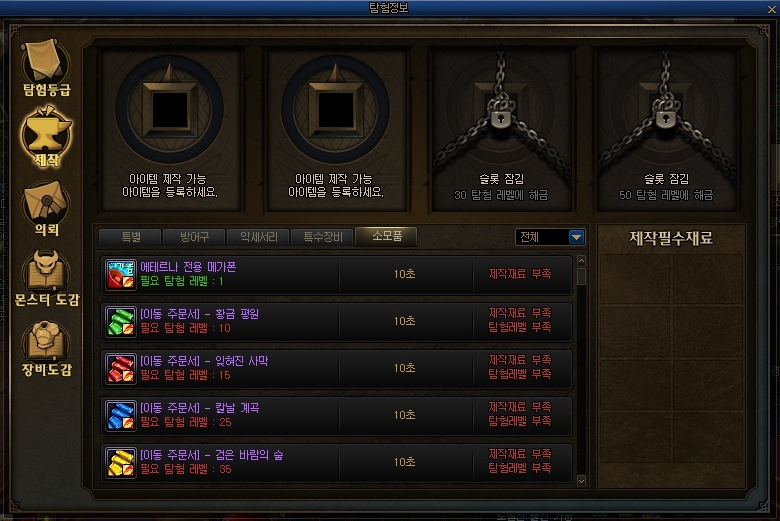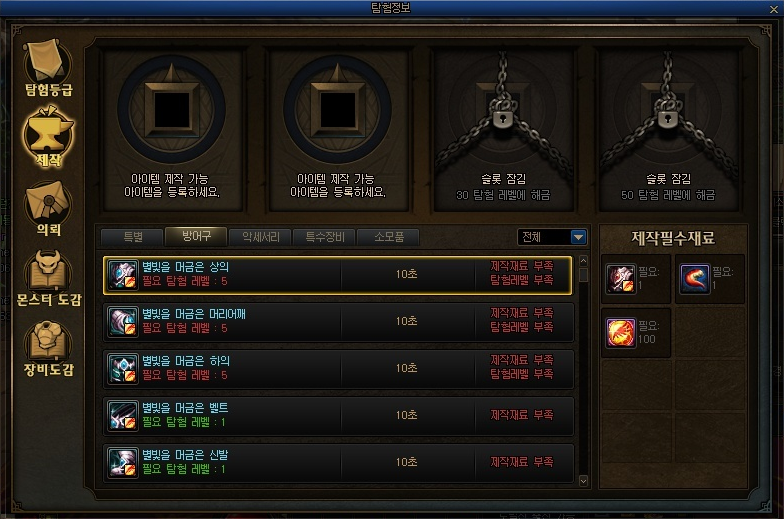 | 6단계 장비[에픽] | 5단계 장비 제작 시 대성공 할 경우 획득할 수 있습니다. |