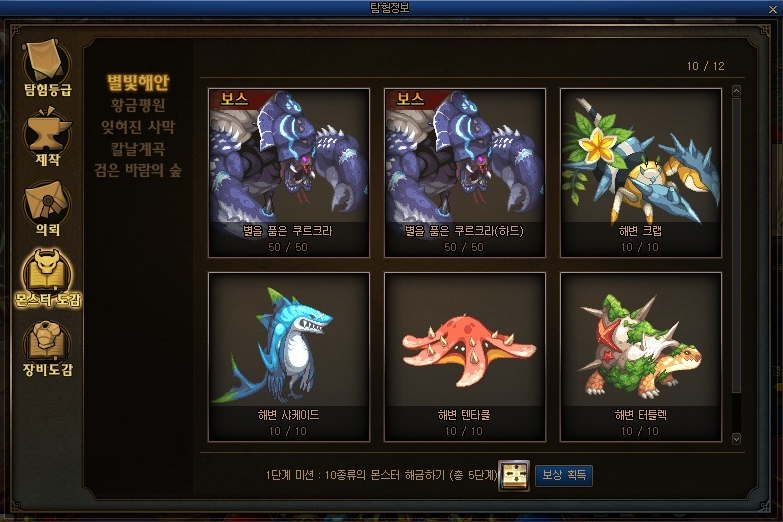 | 3단계 장비[레어] | 2단계 장비와 특정 몬스터 재료를 통해 업그레이드할 수 있습니다. |