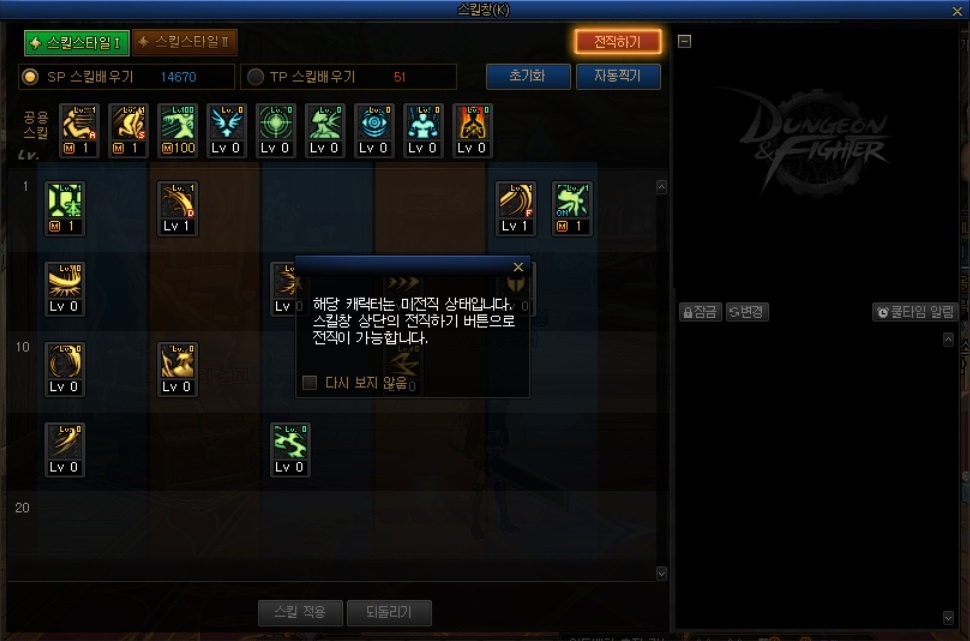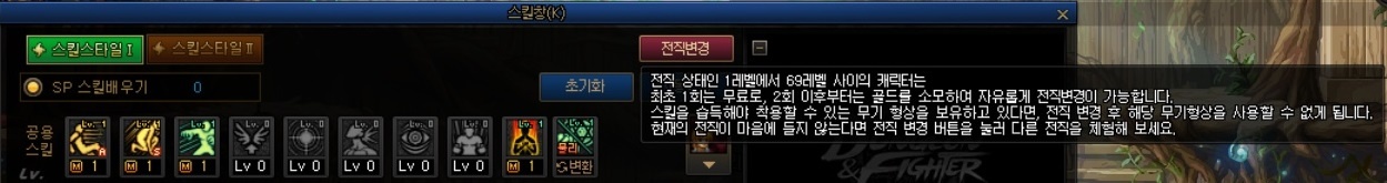 - · 스킬창의 전직변경 시스템이 개편됩니다.