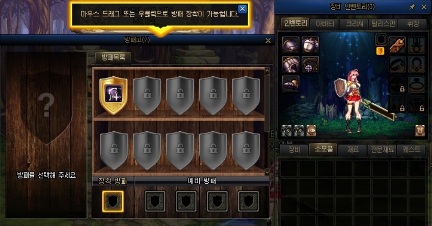 - · 엘븐나이트와 카오스 캐릭터 생성 시 기본 방패가 지급되며, 방패고 관련 가이드 시스템이 추가됩니다.