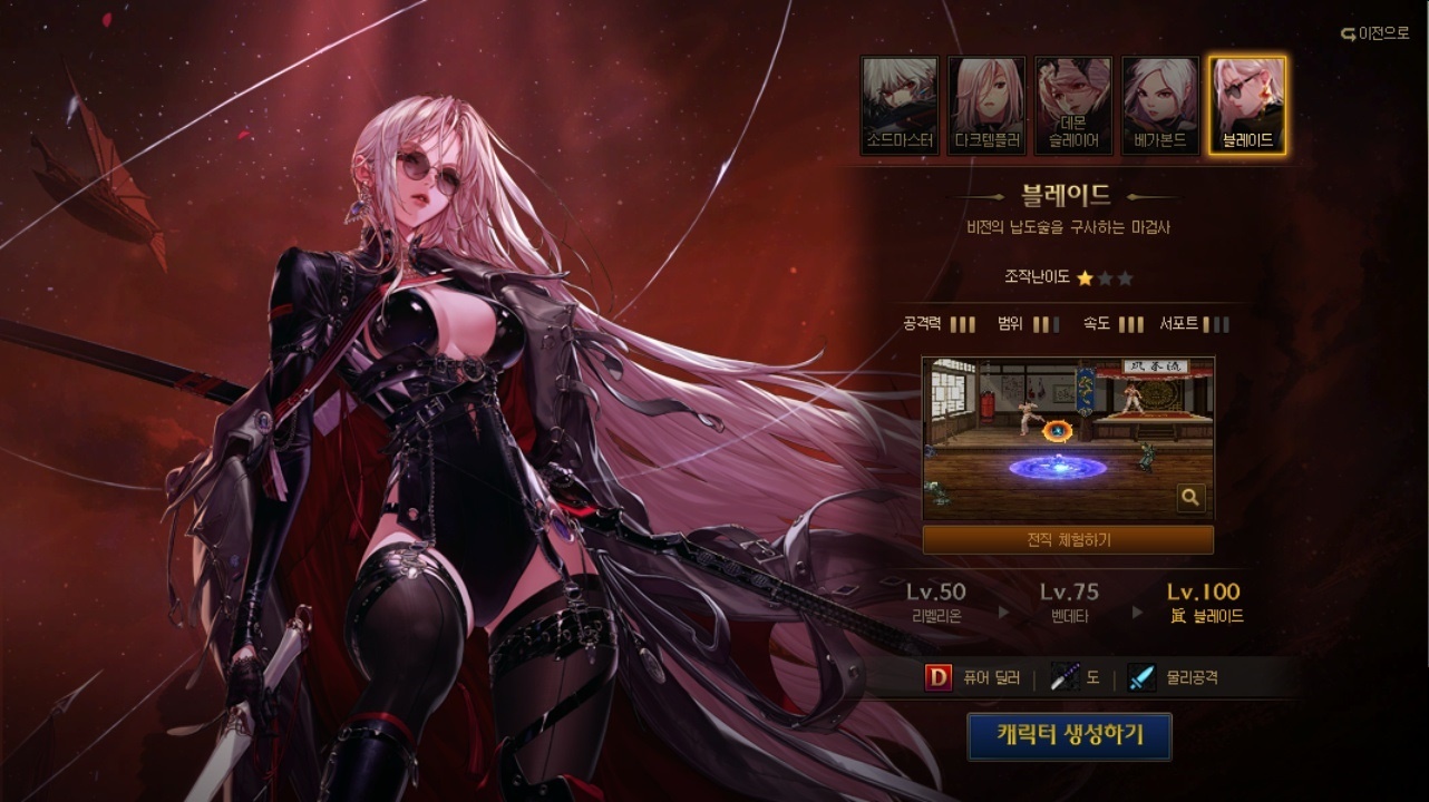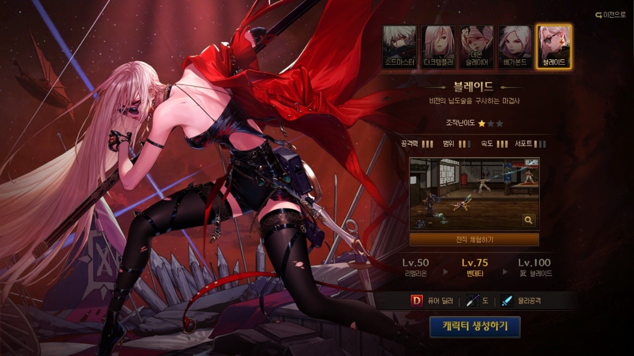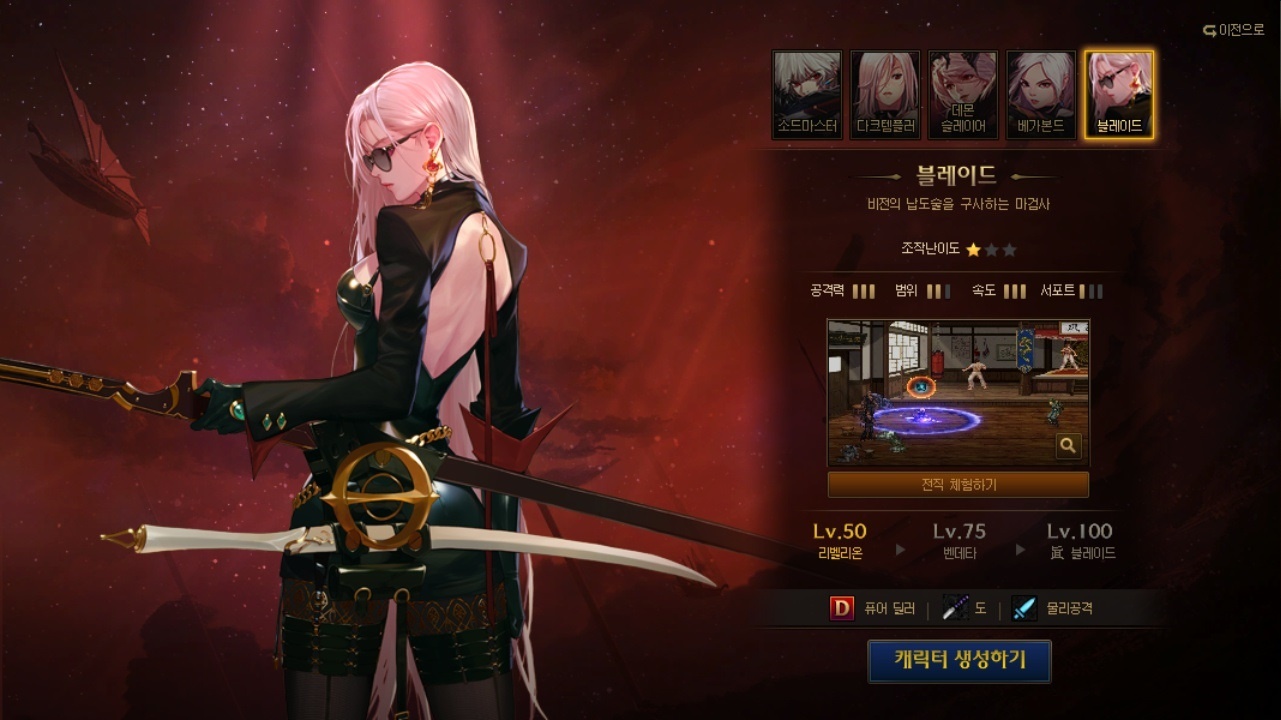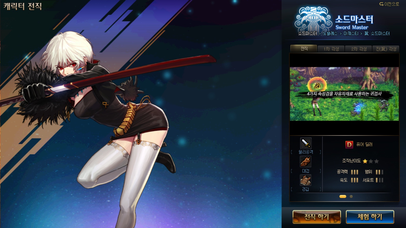 - · 기본 장비 제공과 함께 전직별 체험 가능 스킬이 변경됩니다.