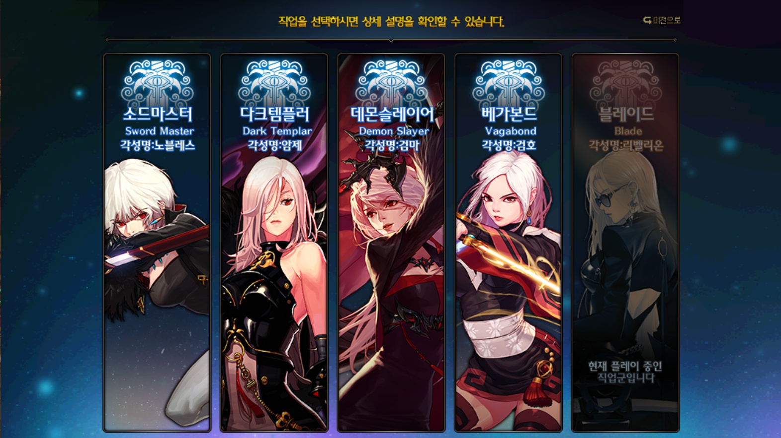 | 전직 선택 전 |