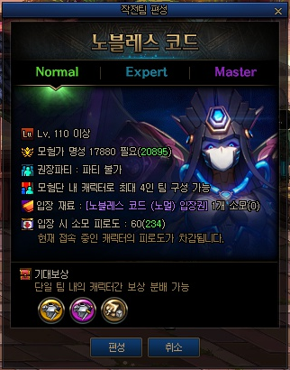 | 노블레스 코드 입장권(마스터) | 입장 가능 | 입장 가능 | 입장 가능 |