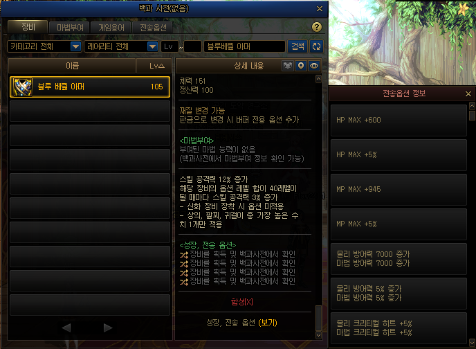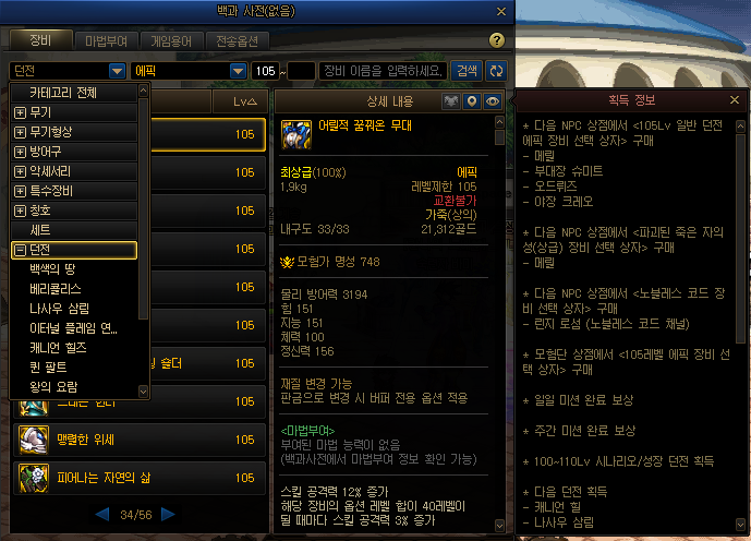 - · 105Lv 장비의 강화 / 증폭 / 재련 비용은 100Lv 장비와 동일합니다.