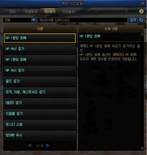 - · 장비 → 옵션 설정에서 기능을 on/off 할 수 있습니다.