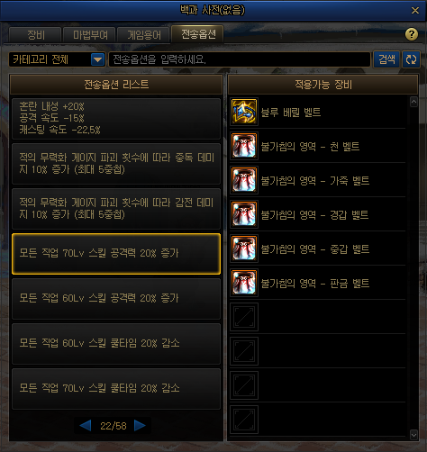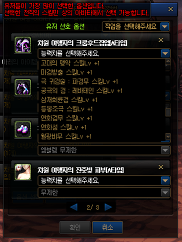 - · 선택한 유저 선호 옵션의 전직의 스킬만 선택 가능 옵션 목록에 출력됩니다.