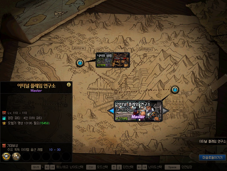 - · Shift 키 입력 시, 선택한 난이도의 최소/ 최고 난이도로 이동 됩니다.