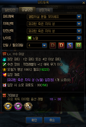 - · 상급 던전의 던전 정보창은 파티 등록창에서 확인하실 수 있습니다.