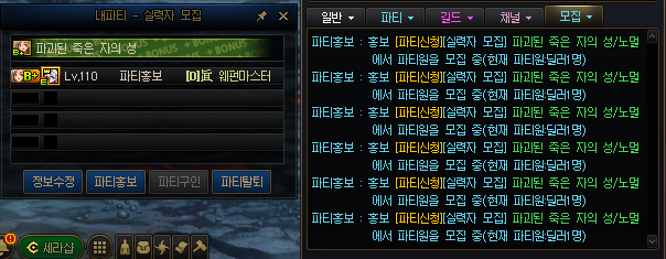 - · 모집 채팅은 파티 홍보 버튼으로만 내용을 입력할 수 있습니다.