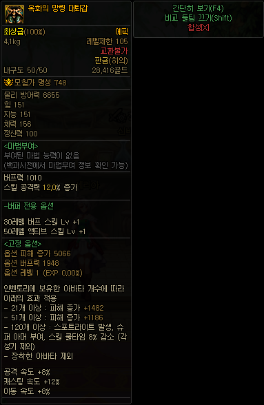 | 105Lv 에픽 (커스텀 옵션 에픽) |