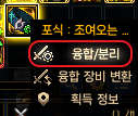 이에 융합 재료 장비를 보유하고 있고, 동일 부위에 융합되지 않은 장비를 착용 중인 경우, 장비 아이콘에 신규 노티를 추가하고 융합 시스템을 이용할 수 있도록 퀵 메뉴에 '융합/분리'에 강조 효과를 추가하였습니다.