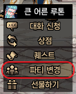 - · 다른 지역의 파티가 생성된 상태일 경우, NPC 선택 메뉴에 파티 생성 → 파티 변경 메뉴가 노출 되어 현재 위치에 맞는 파티 정보로 즉시 변경할 수 있습니다.